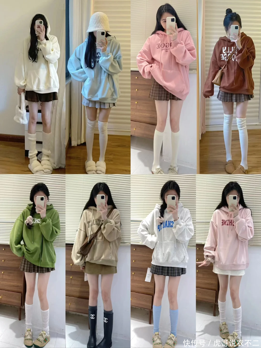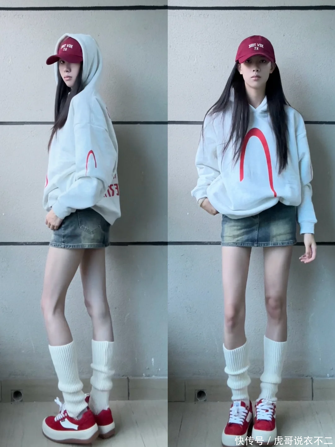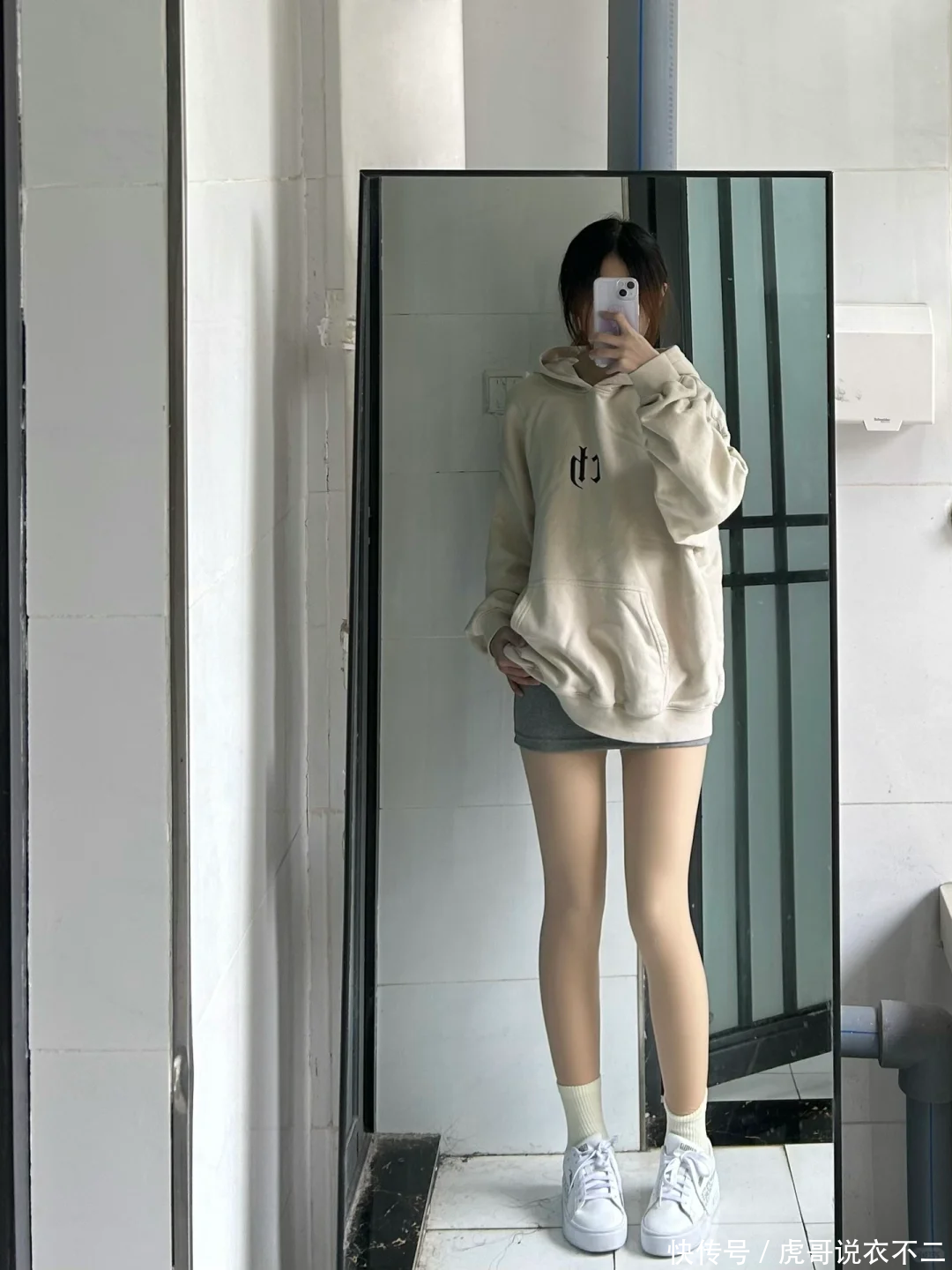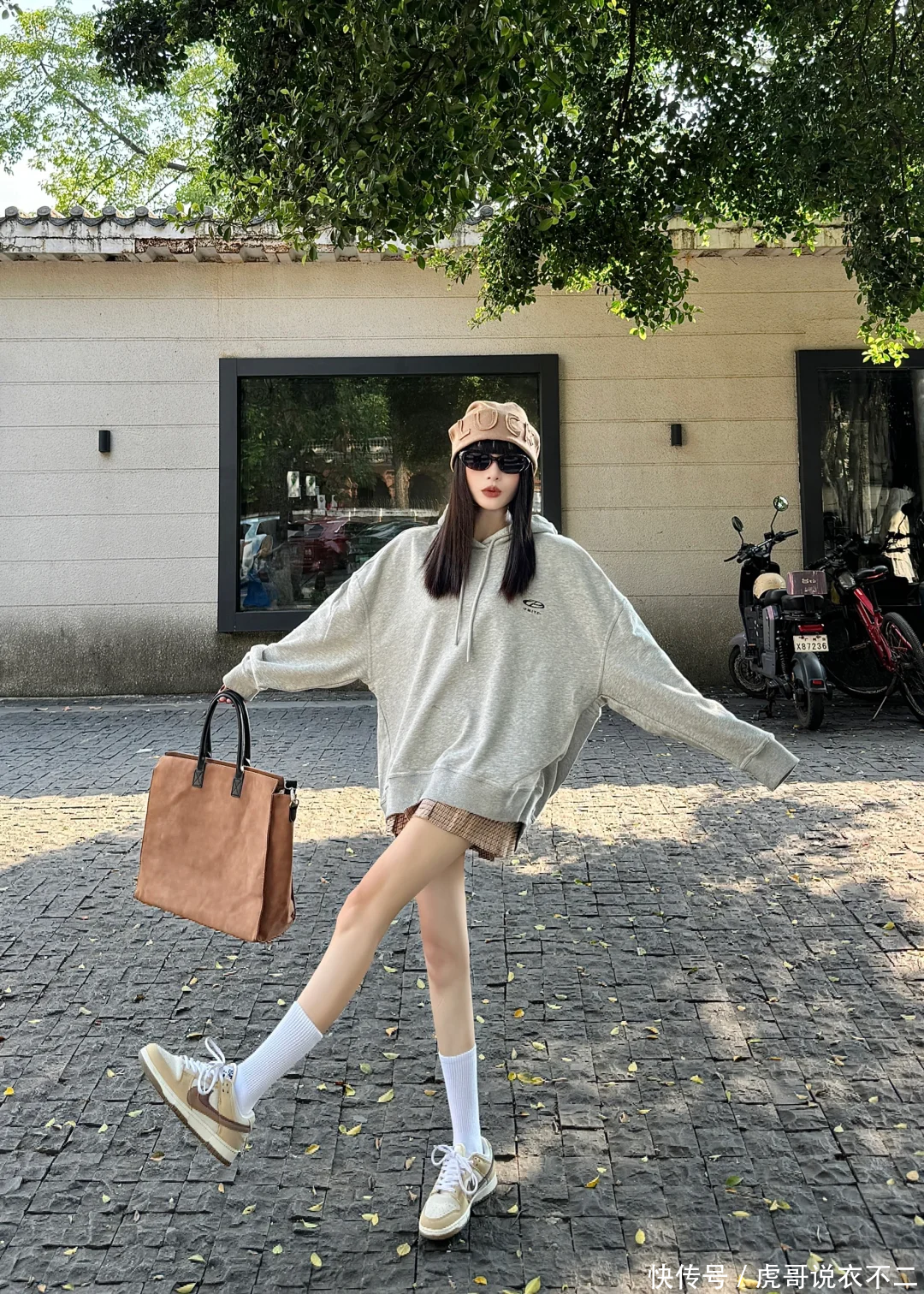 二、卫衣+短裙:俏皮可爱,展现青春活力卫衣与短裙的组合,无疑是展现青春活力的最佳CP。